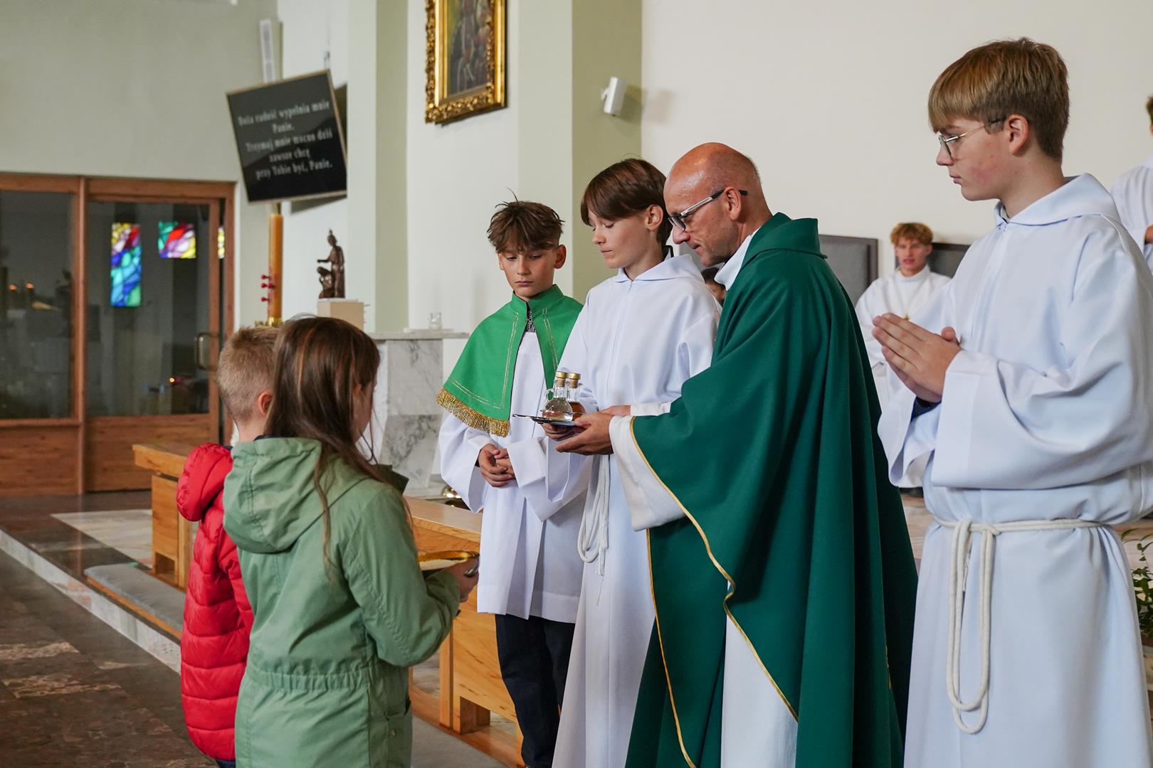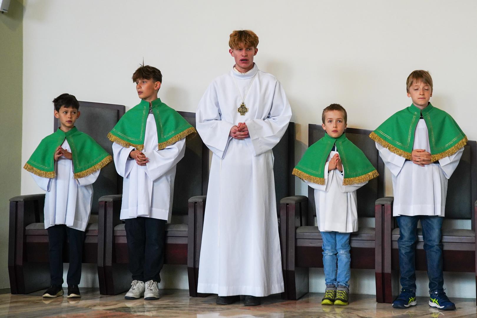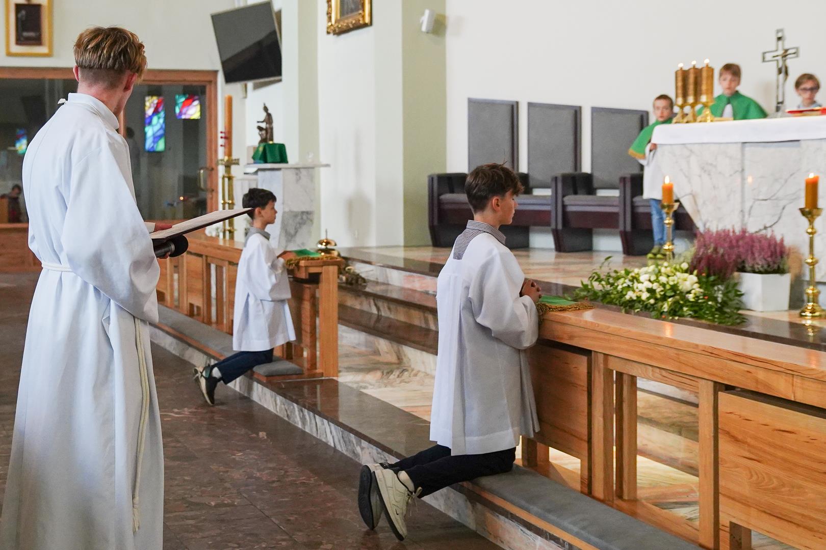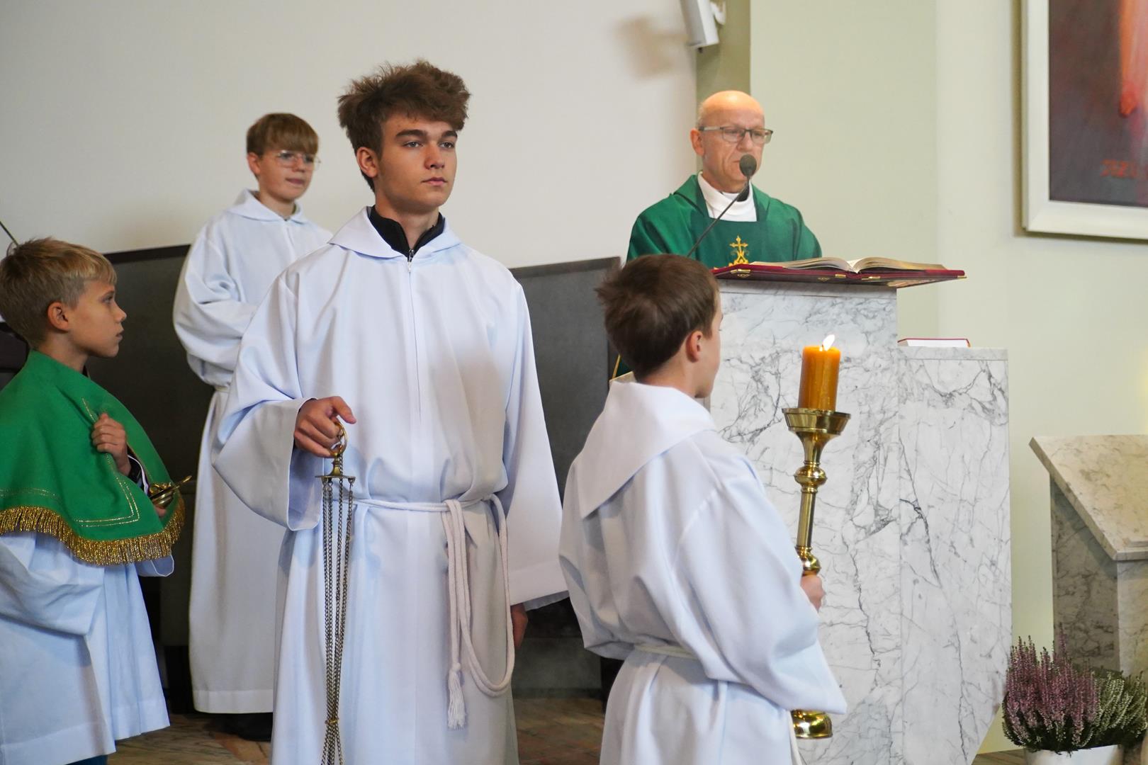 W niedzielę 5.10.2025 na Mszy św. o godz. 10,00 odbyło się uroczyste przyjęcie do grona ministrantów, braci Adama i Antka Sobczyków. Nowo przyjęci ministranci złożyli przyrzeczenie ministranckie, które jest publicznym ślubowaniem składanym przez nowych ministrantów, obiecują oni gorliwie i pobożnie wypełniać swoje obowiązki, służąc Bogu i wspólnocie parafialnej. Następnie ksiądz Proboszcz udzielił nowym ministrantom błogosławieństwa. Po Mszy św. , księża, ministranci oraz ich rodzice udali się do sali młodzieży na poczęstunek.