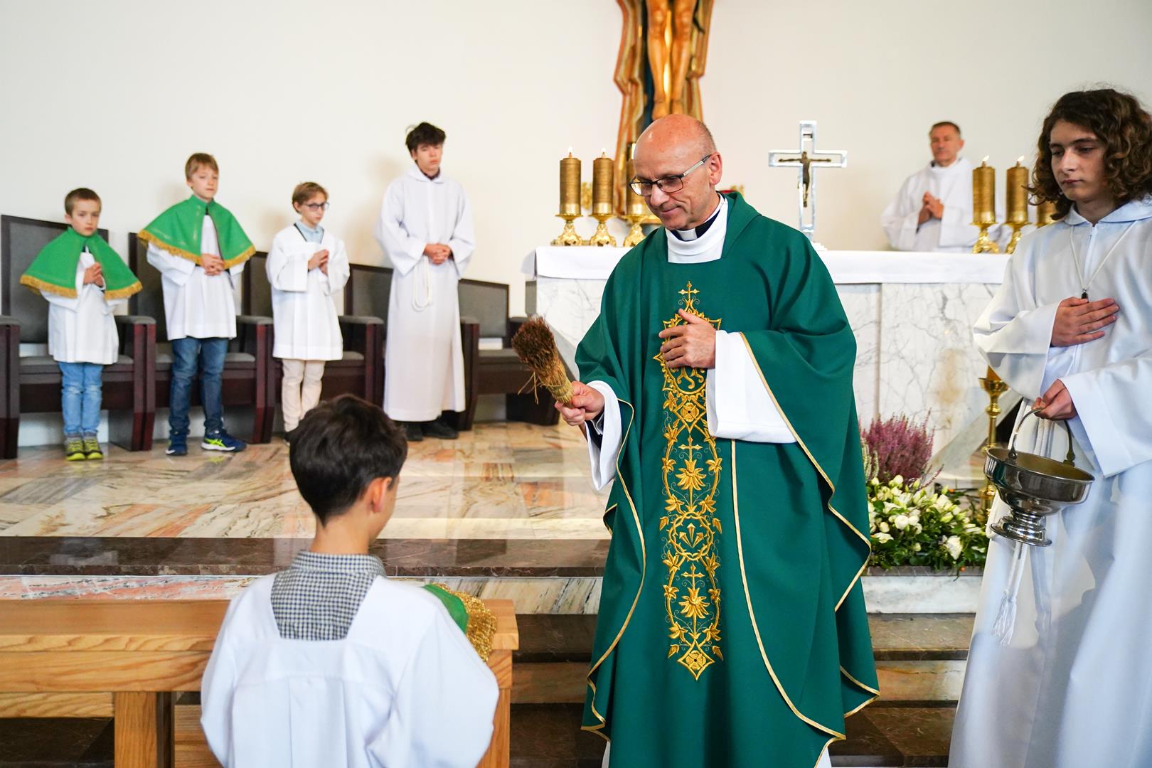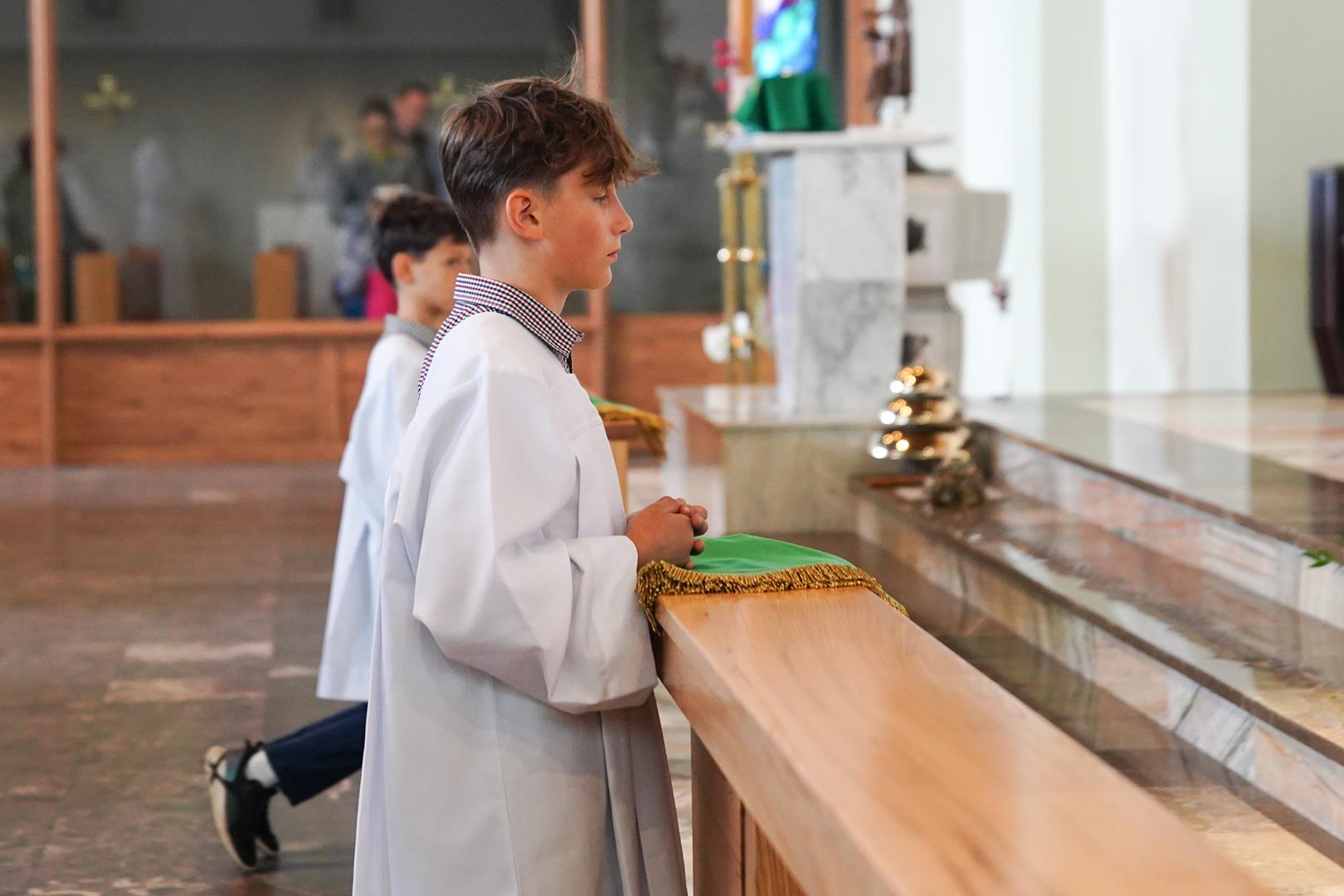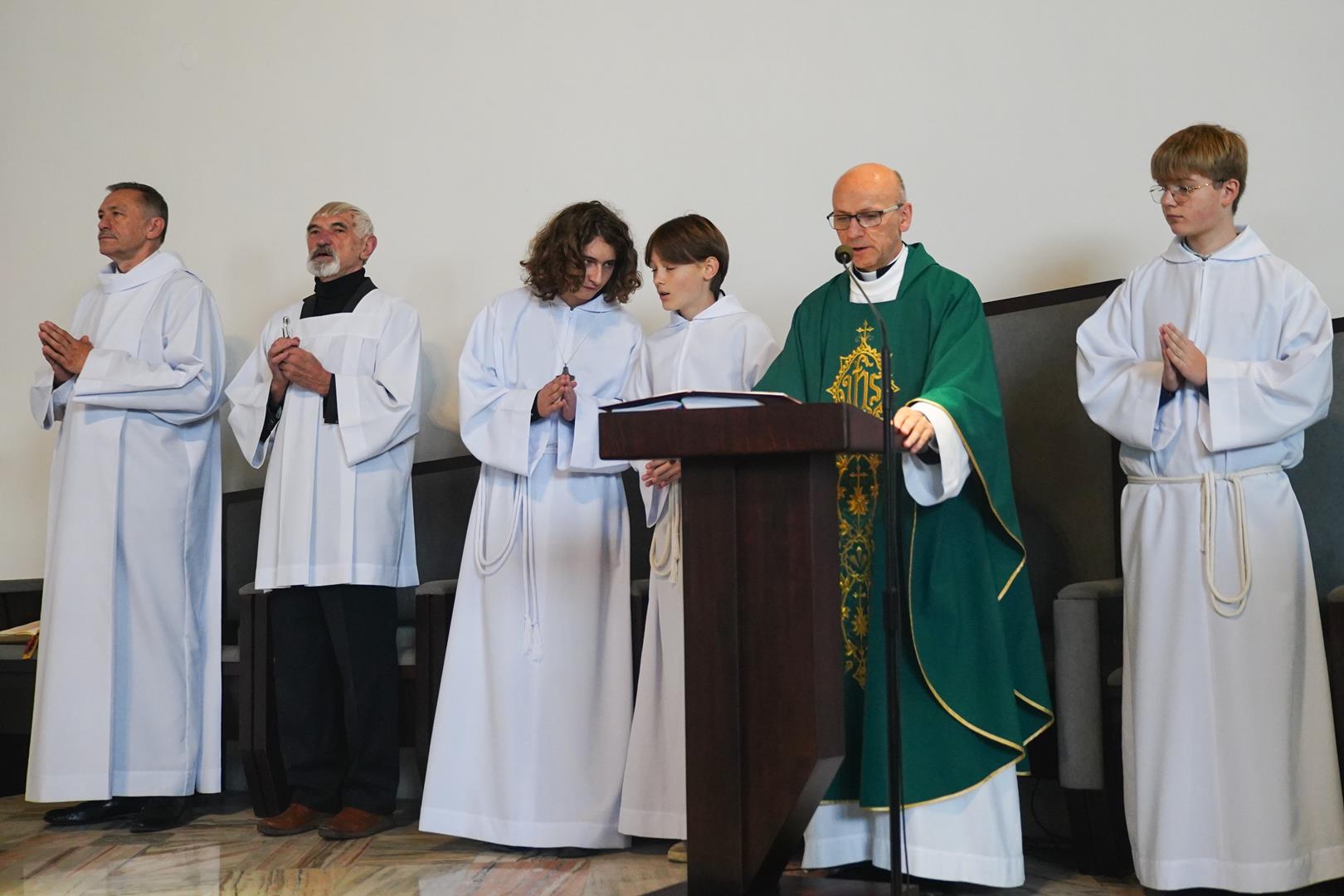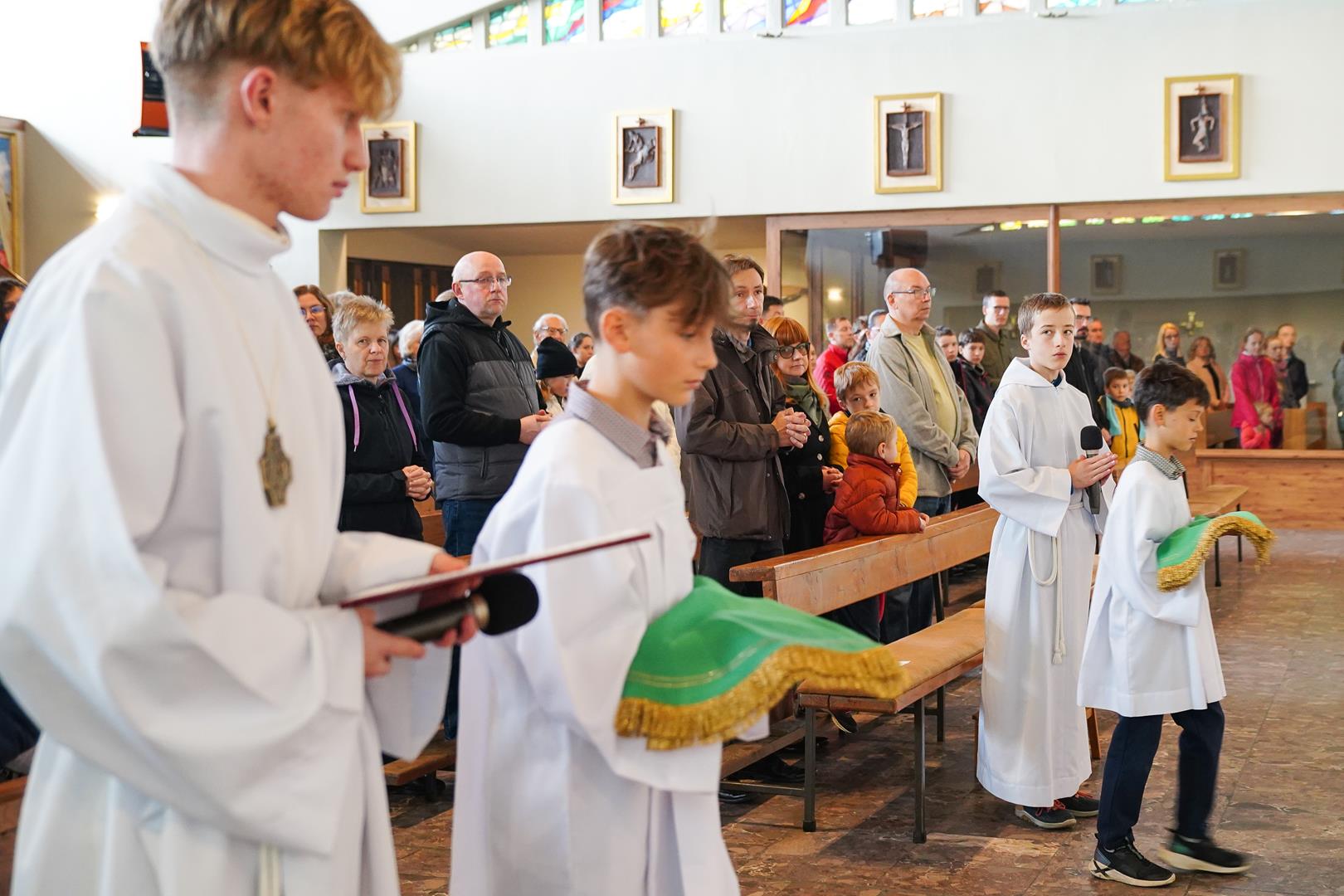 W niedzielę 5.10.2025 na Mszy św. o godz. 10,00 odbyło się uroczyste przyjęcie do grona ministrantów, braci Adama i Antka Sobczyków. Nowo przyjęci ministranci złożyli przyrzeczenie ministranckie, które jest publicznym ślubowaniem składanym przez nowych ministrantów, obiecują oni gorliwie i pobożnie wypełniać swoje obowiązki, służąc Bogu i wspólnocie parafialnej. Następnie ksiądz Proboszcz udzielił nowym ministrantom błogosławieństwa. Po Mszy św. , księża, ministranci oraz ich rodzice udali się do sali młodzieży na poczęstunek.