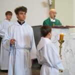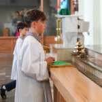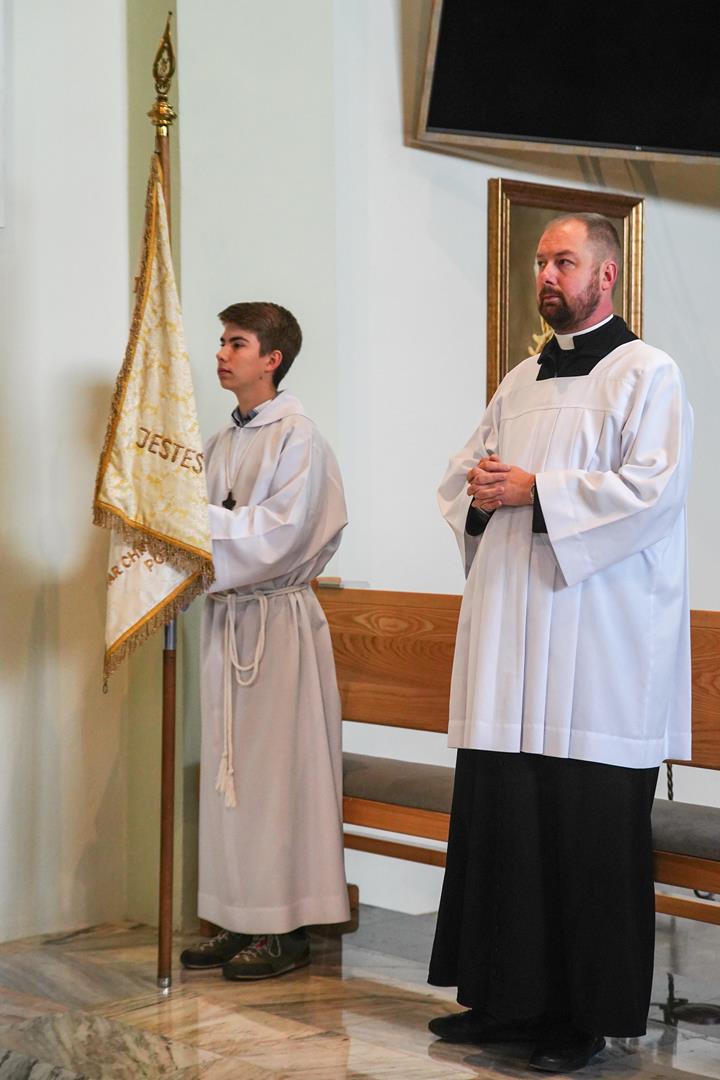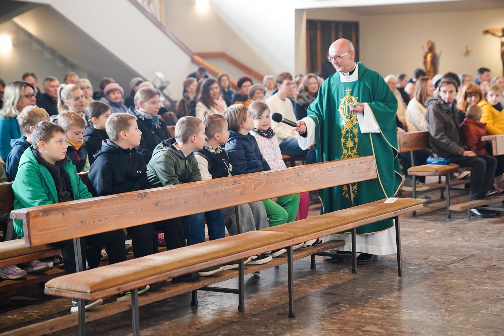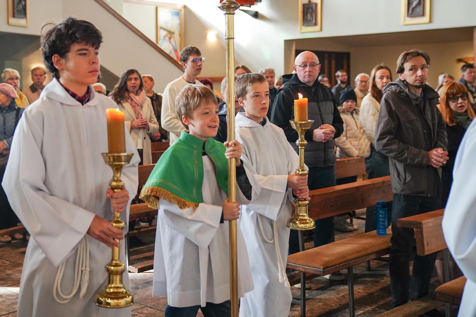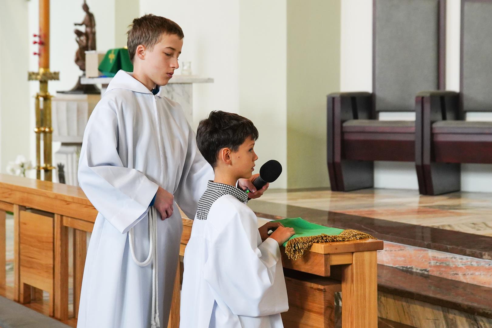 W niedzielę 5.10.2025 na Mszy św. o godz. 10,00 odbyło się uroczyste przyjęcie do grona ministrantów, braci Adama i Antka Sobczyków. Nowo przyjęci ministranci złożyli przyrzeczenie ministranckie, które jest publicznym ślubowaniem składanym przez nowych ministrantów, obiecują oni gorliwie i pobożnie wypełniać swoje obowiązki, służąc Bogu i wspólnocie parafialnej. Następnie ksiądz Proboszcz udzielił nowym ministrantom błogosławieństwa. Po Mszy św. , księża, ministranci oraz ich rodzice udali się do sali młodzieży na poczęstunek.