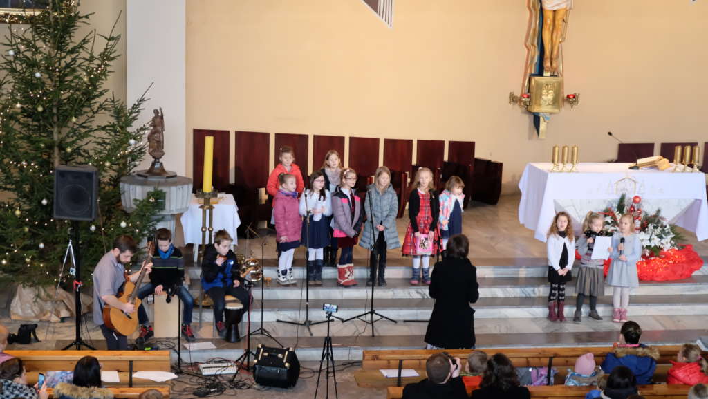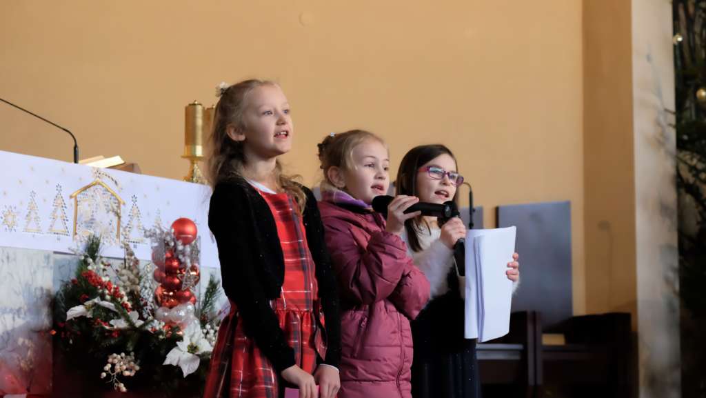 Coraz piękniej brzmi nasza parafialna schola dziecięca. Dzieci potrafią wielbić Pana Jezusa z olbrzymią radością co udowodniły podczas koncertu, który odbył się w niedzielę 7 stycznia po Mszy świętej o godz. 10:00. To niewątpliwa zasługa Państwa Niemirów, którzy wiele serca wkładają by dziecięce głosy zachwycały uszy słuchaczy a przede wszystkim, by śpiew stawał się modlitwą. Jako proboszcz jestem bardzo szczęśliwy, że posiadamy taki zespół. Bóg zapłać!